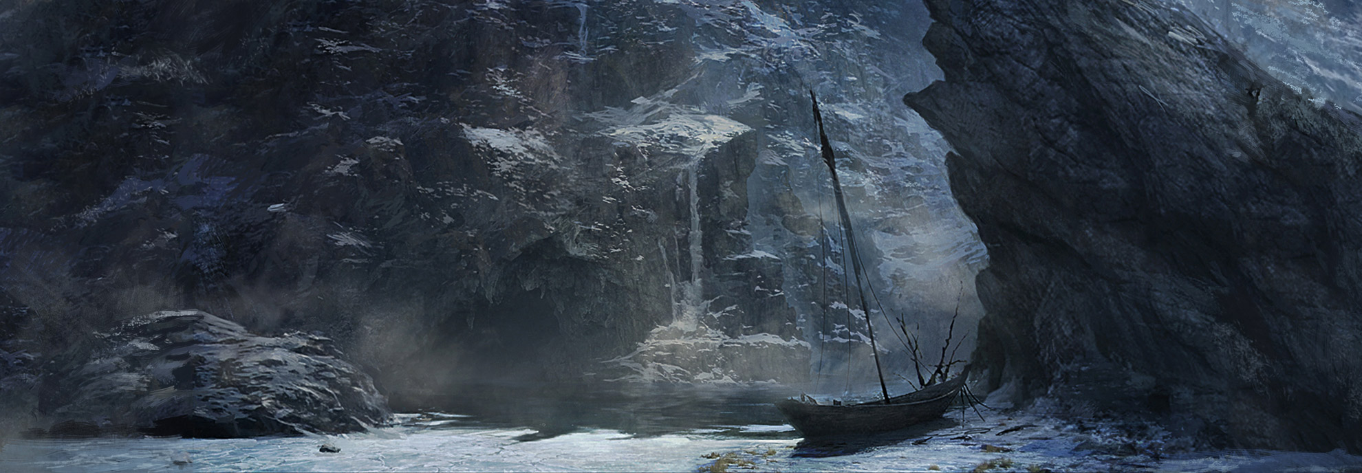 Boot an Felsenküste